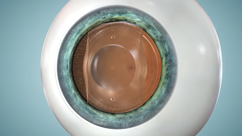 Step 4: Lens insertion: The folded lens is placed between the iris and the natural lens.